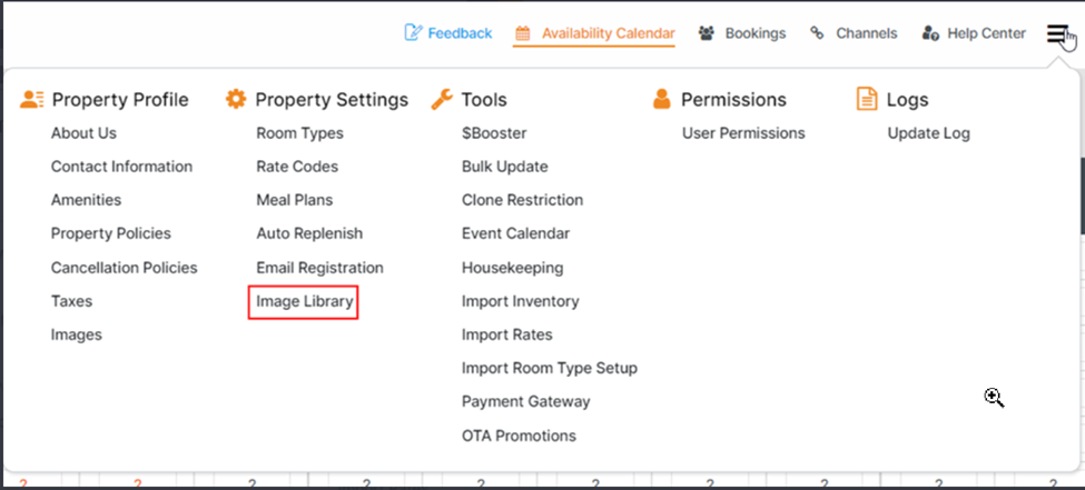 •Login ke STAAH MAX > Property Settings and pilih Image Library.