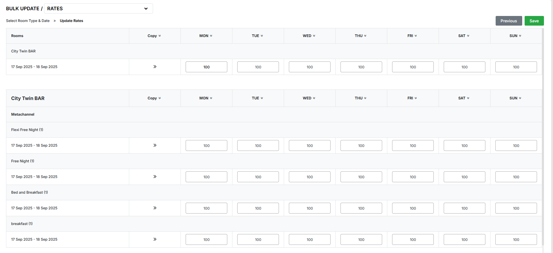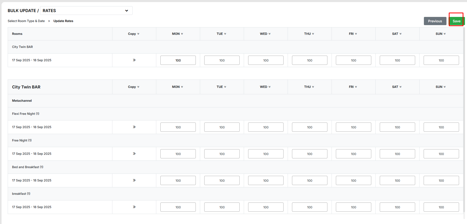 Put the Rate in the relevant boxes (Room, Dates) on the Base Rates screen and hit Save.