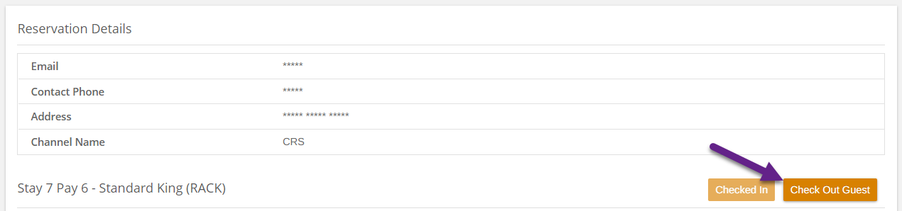 - Check out guest via ‘Stay view’ module, this will update the housekeeping guest status to ‘Checked-out’