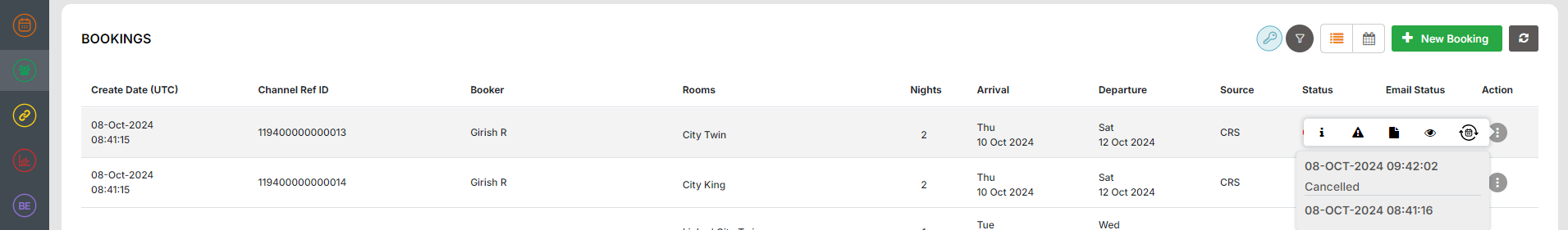 1. Search the Booking using the various search options available.