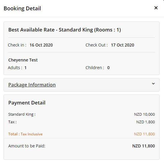 3. All booking information (package inclusion, rates, taxes etc) is consolidated in a pop-up tool.