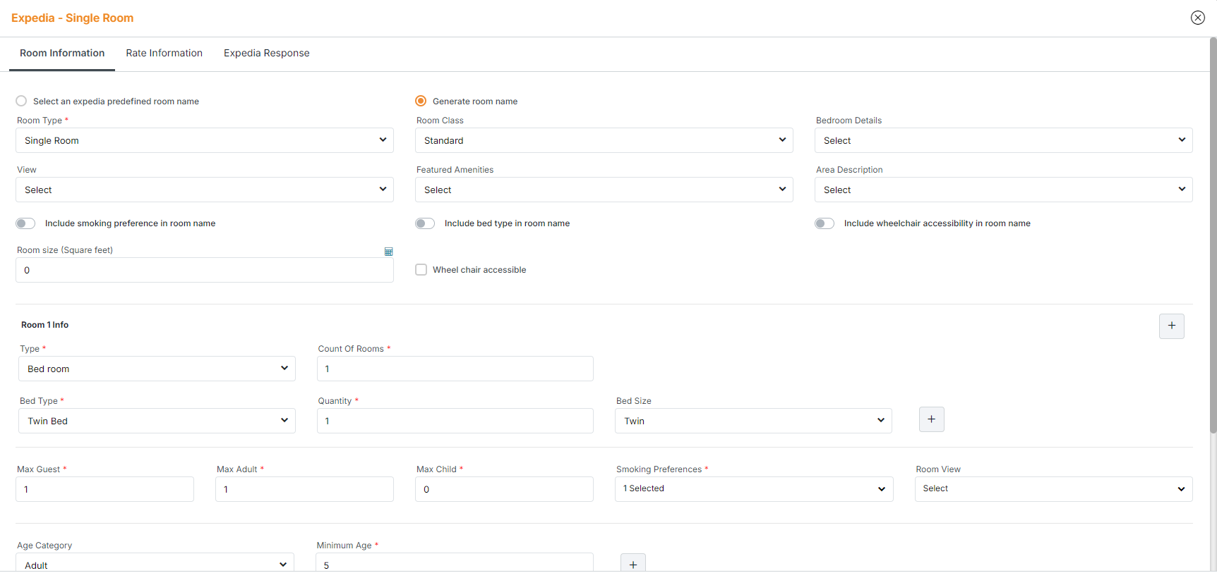 o Manage room/rate plan content information on Expedia