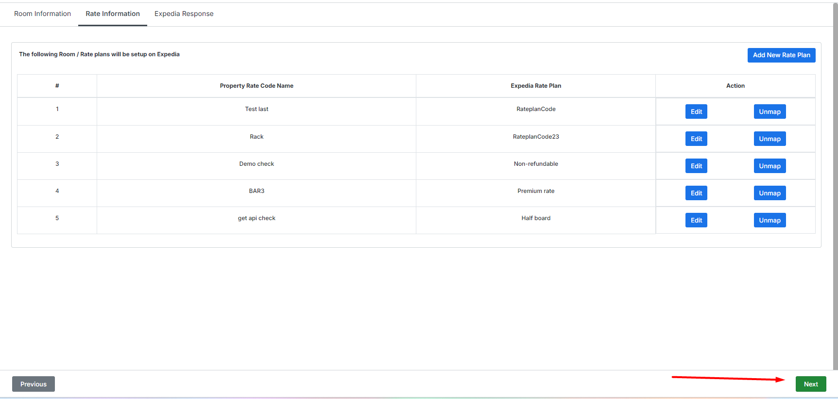 · Next – to map to an existing rate plan on Expedia. Simply select rate code from drop down box