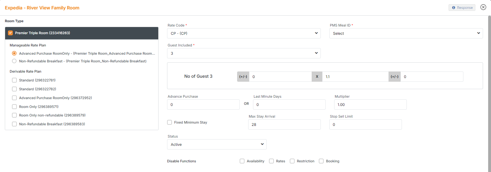 o Create a new rate plan and link to an existing Expedia room type