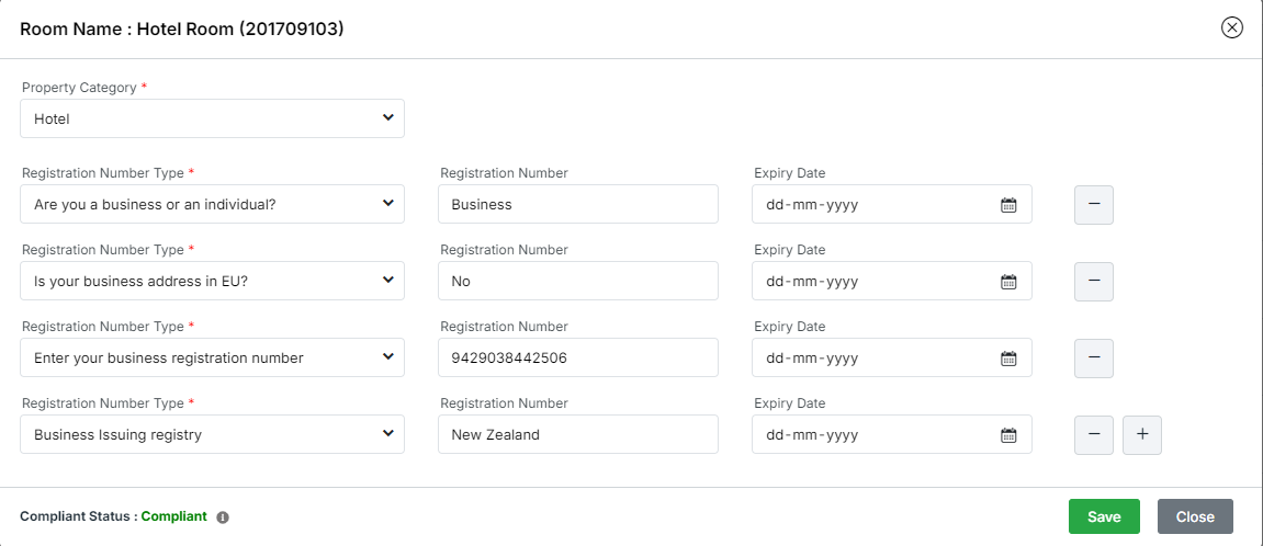 •Compliance – allows propertys to view room/unit registration status and manage registration information