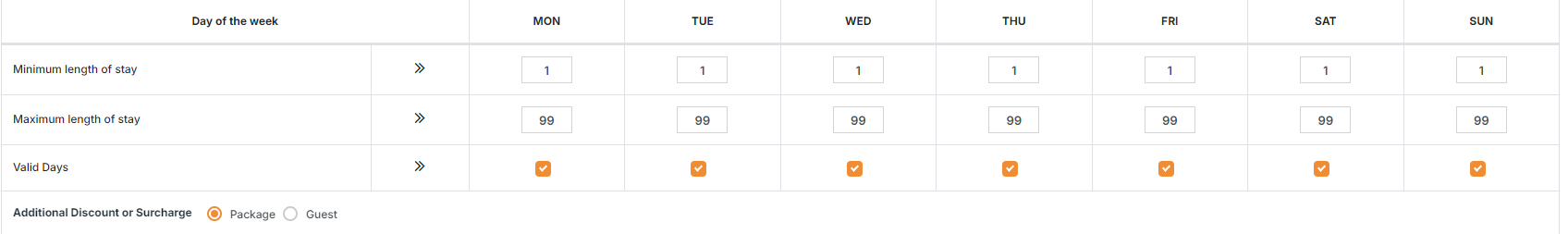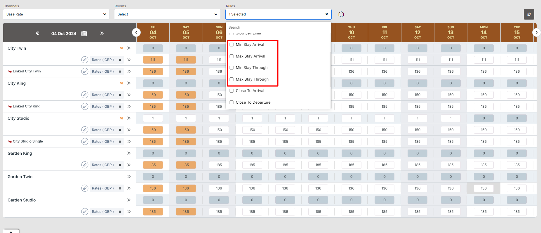 Min/ Max Stay Through: The restriction applies to reservations that are booked across the days.