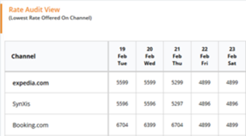 - Rate Audit View > Indicating lowest rate offered on various channel(s) for each day