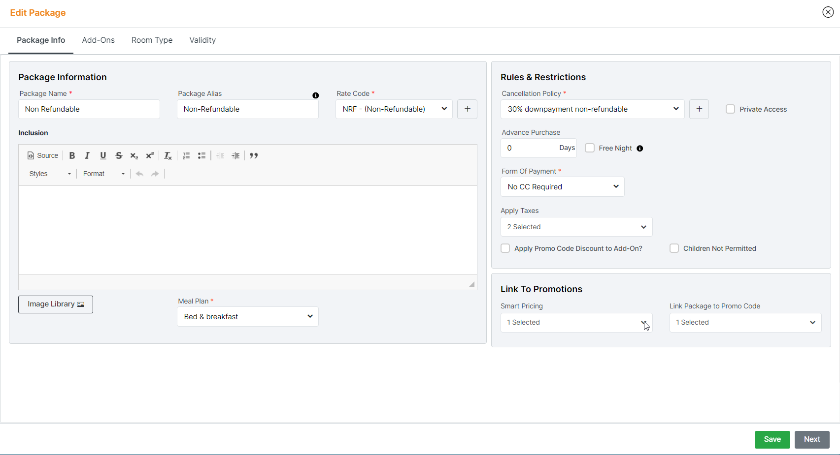Pay Now: Allows a property to reward bookers who pay at the time of booking. Properties must have a payment gateway integrated with MAX Booking Engine.