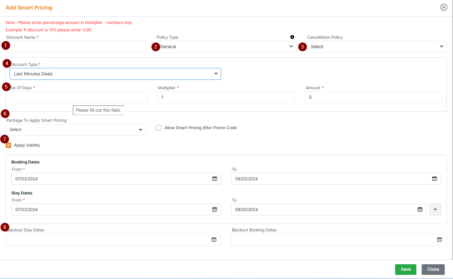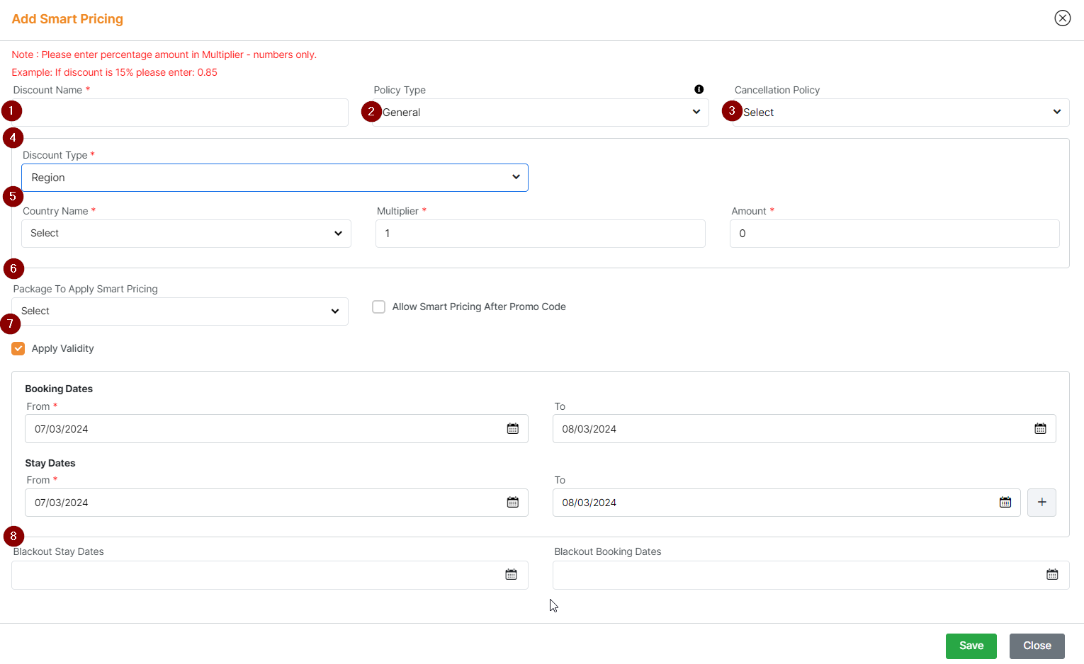 Multi Nights: Allows you to scale the discount based on number of stay nights