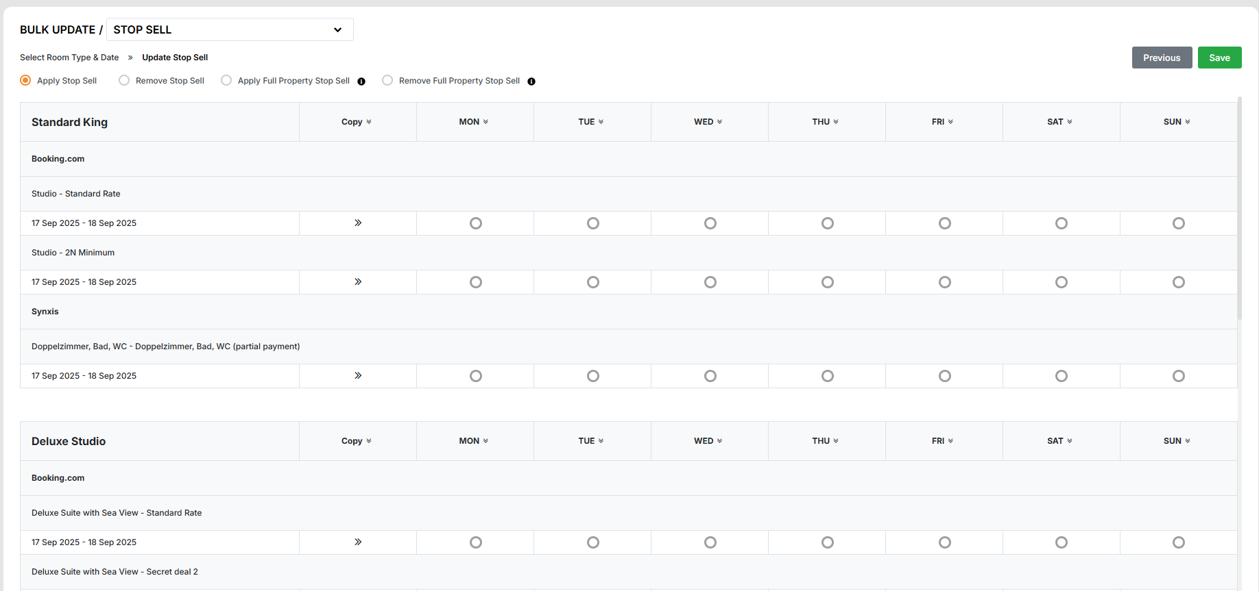 For StopSell, Close to Arrival & Close to Departure - Do not forget to choose either “Apply” or “Remove” before selecting the date range