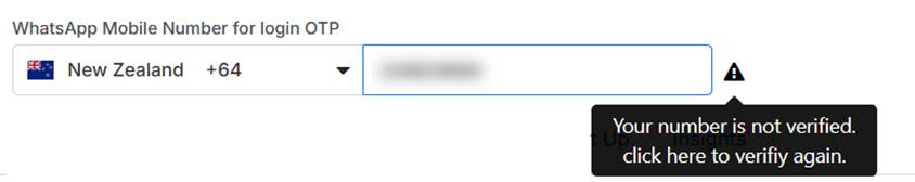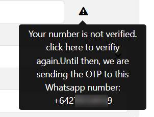 2. If a user needs to update their number, simply add new number in WA OTP field. OTP will continue to go to the registered number until verified. The pending verification icon will include below info