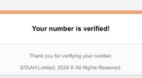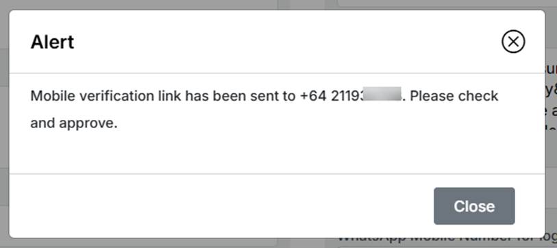 2. Verification - After they have entered their number and saved, a popup will appear, that a verification notification has been sent to the registered number and to approve/verify number