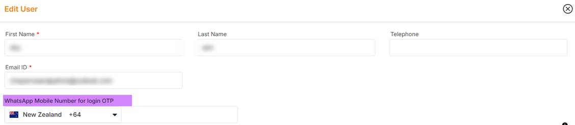 - From there, locate your user, click on edit and add your mobile number for WhatsApp OTP delivery.